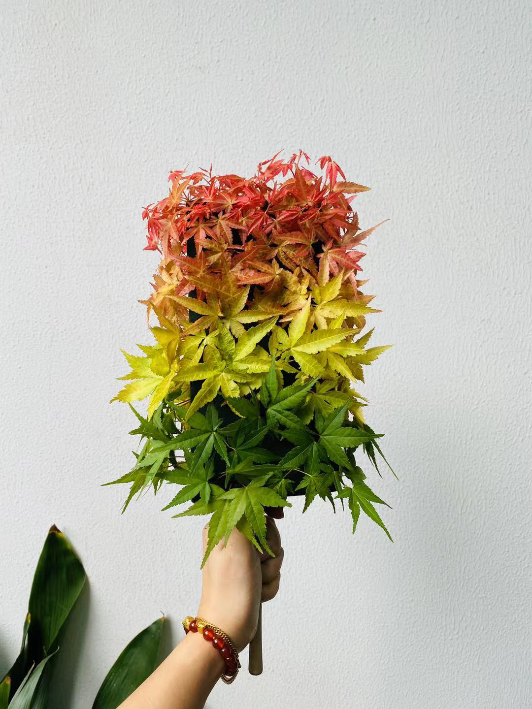 該產(chǎn)品的母本是一種有點特色的彩葉雞爪槭,作為雞爪槭的鄉(xiāng)土彩葉新品種,其四季三彩的特點也得到了園林界人士的廣泛認(rèn)可,但作為一個園林喬木的新品植物,其從品種選育到擴繁、成品培育到廣泛市場應(yīng)用有著非常長的周期。